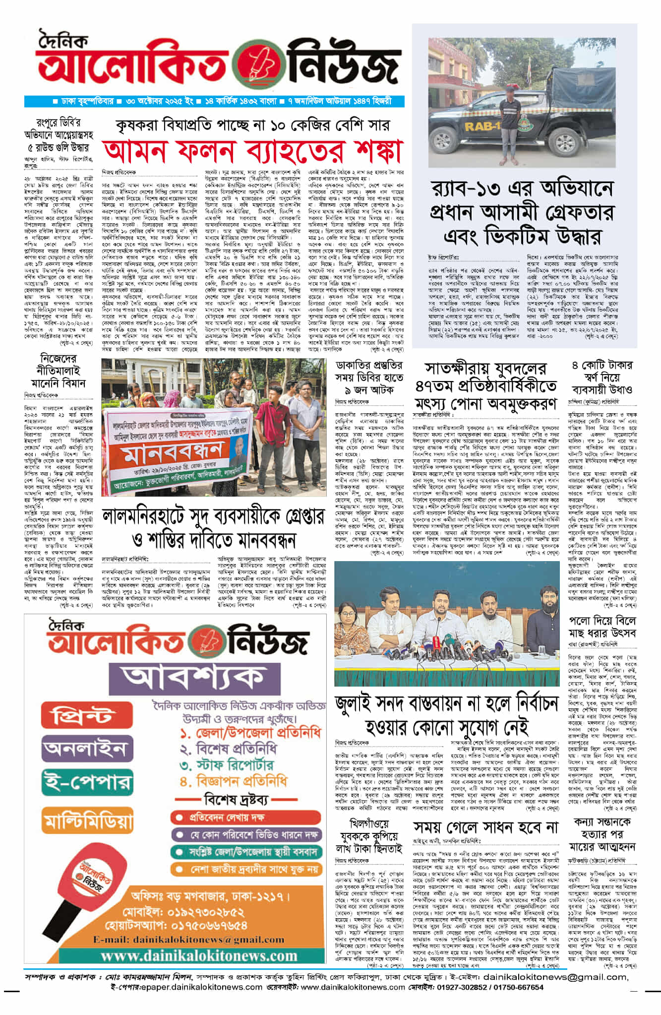 ০১৯২৭-৩০২৮৫২ / ০১৭৫০-৬৬৭৬৫৪ দৈনিক আলোকিত নিউজ আলোকিত ফাউন্ডেশনের একটি সহযোগী প্রতিষ্টান।